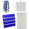 Contenitori sovrapponibili e cassettiere realizzati in resina termoplastica, carrelli con ruote e pannelli pensili di varie tipologie, dimensioni e colorazioni. Prodotti robusti e molto pratici adatti per diversi utilizzi, come ad esempio magazzini o negozi.