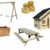 Altalene in legno di pino impregnato , disponibili vari modelli con scivoli e scalette e accessori in legno vari da giardino per bambini