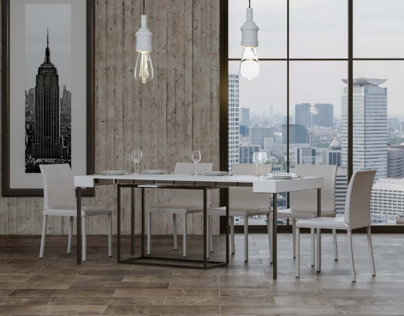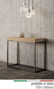 Una nuova consolle studiata per essere estremamente stabile, robusta ed elegante. La base in metallo, verniciata in color antracite, è la struttura portante di questa consolle. Usata come tavolo da pranzo, per la sua eccezionale stabilità può essere usato tranquillamente anche come tavolo da lavoro.