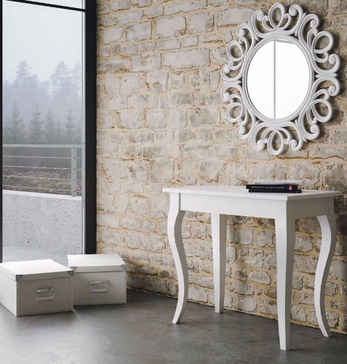 Consolle allungabile Olanda realizzata con pannelli di nobilitato in essenza. Gambe in massello di faggio verniciate in bianco frassino o noce. Dotata di sostegno centrale a 2 appoggiaterra, a 4 appoggiaterra o con carrello porta allunghe che funge anche da sostegno centrale.