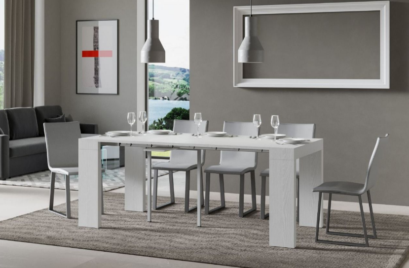 Prodotto Made in Italy. Dimensioni: L.90 x H.77 x P.40 (allungabile fino a 196) cm