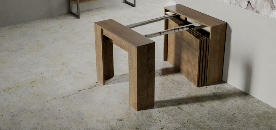 1. il piano superiore allungabile con sistema di guide in alluminio ad elevata scorrevolezza. Spazioso e robusto.