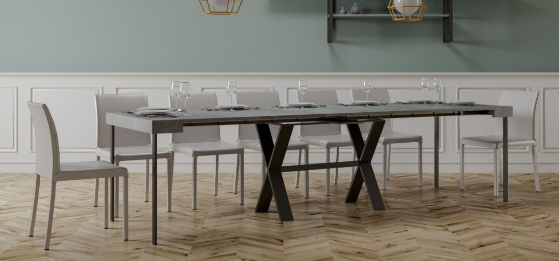 Perfetta per ogni ambiente e fondamentale per chi cerca la comodità di un tavolo allungabile pur avendo a disposizione uno spazio estremamente limitato. Inseribile in contesti classici e moderni. In poche e semplici mosse, la consolle Xenia si trasforma in un tavolo da pranzo abbastanza grande da ospitare comodamente 14 commensali. Un mobile di pregio ed elegante. L'ampio e solido telaio in metallo lavorato al pantografo ad alta precisione, costituisce la struttura portante della consolle stessa. Realizzata interamente in Italia mediante l'utilizzo di materiali 100% italiani.