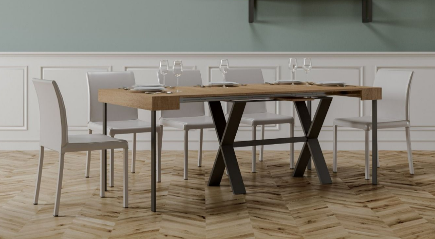 Consolle Xenia Small; ideale quando non v'è alcuna necessità di avere una consolle allungabile di tre metri, la Xenia Small è perfetta per avere a disposizione un tavolo da pranzo solido e funzionale. In poche e semplici mosse, la consolle Xenia si trasforma in un tavolo da pranzo abbastanza grande da ospitare comodamente 10 commensali. Un mobile di pregio ed elegante. L'ampio e solido telaio in metallo lavorato al pantografo ad alta precisione, costituisce la struttura portante della consolle stessa.