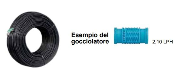 ALA GOCCIOLANTE CON GOCCIOLATORI DA 2 LITRI/H - DISTANZA TRA GOCCIOLATORI 30 CM DIAMETRO 16 MM ROTOLO 100 METRI