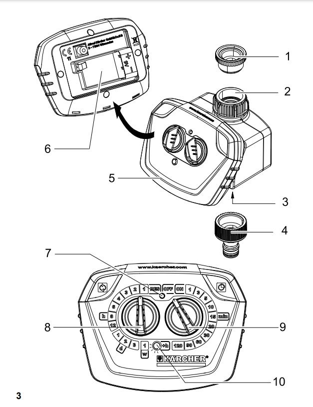 La seguente centralina irrigazione WT4 è molto facile da usare: è possibile programmare in modo semplice le modalità e le tempistiche di irrigazione. Inoltre è dotata di display estraibile, manopole di programmazione grandi e di un pannello di controllo molto chiaro e intuitivo. Grazie a queste caratteristiche usarla risulta facile e veloce. La durata massima dell'irrigazione è di 120 minuti. L'irrigazione si aziona e si ferma automaticamente a seconda della programmazione, in questo modo lo spreco è ridotto al minimo. Le centraline di irrigazione KARCHER sono compatibili con tutti i sistemi a click in commercio. La dotazione di questo prodotto comprende un raccordo rubinetto e un prefiltro. La batteria da 9-Volt non è inclusa.