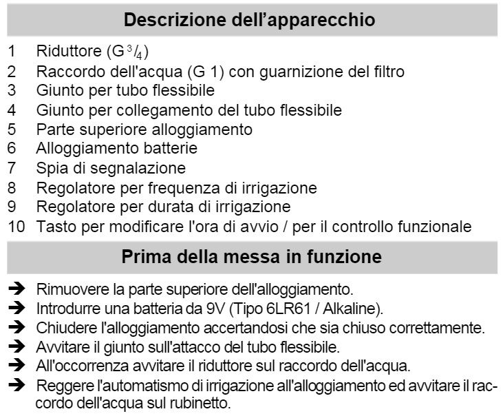 - Avvio e spegnimento automatici (Irrigazione di precisione-pensata per le regioni con restrizioni nell'uso dell'acqua)