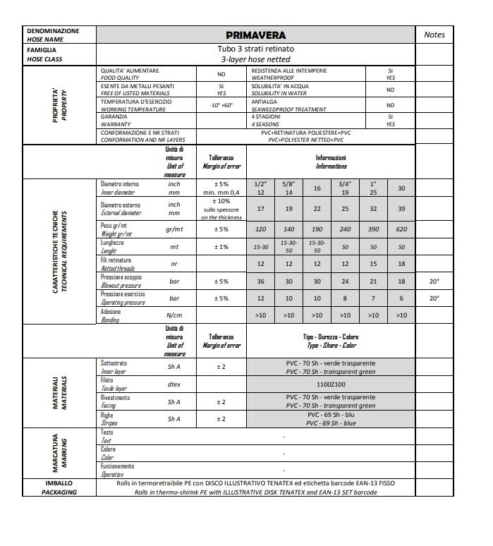 Tubo retinato in PVC antigelo, con trama tessuta di rinforzo. Diametro interno 16 mm e diametro esterno 22 mm, rotolo da 50 metri lineari. Tubo altamente resistente alla pressione esercitata dall'acqua, testato fino ad un massimo di 30 bar. Si rivela pertanto particolarmente resistente a quello che viene considerato uno dei peggiori nemici dei rubi in plastica, il freddo estremo, che genera facilmente delle crepe nella plastica. Ideale per irrigare manualmente giardini,orti ,terrazzi e prati. E' possibile eseguire questa operazione anche in maniera automatizzata, collegandolo ad un irrigatore dinamico, che può bagnare in maniera uniforme una superficie più o meno grande senza necessitare, durante l'irrigazione, della presenza di un giardiniere o di chi si occupa della manutenzione degli spazi verdi. Ottimo da inserire in un impianto di irrigazione di superficie, sistema semplice ed economico, per evitare al massimo sprechi d'acqua ed arrivare a punti ostici che un impianto a goccia non riuscirebbe a raggiungere.