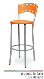 Sgabello in metallo con seduta e schienale in plastica indicato per il ristorante e pub