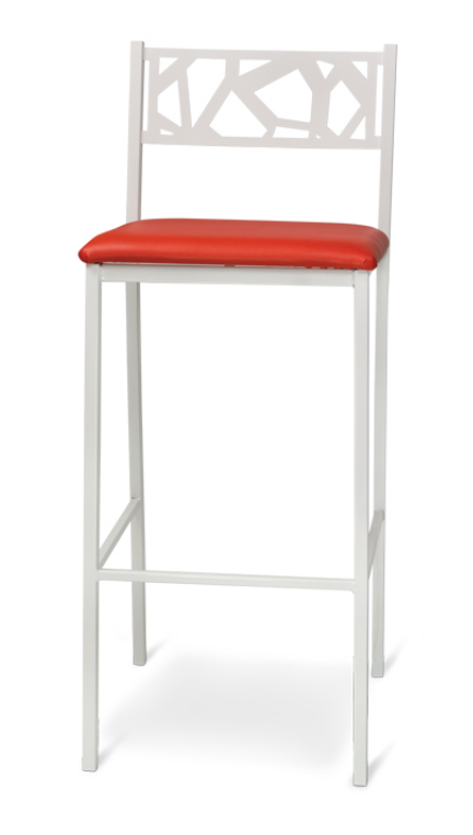 Sgabello in metallo con schienale in ferro laserizzato e seduta imbottita ecopelle,indicato per il ristorante e pub.