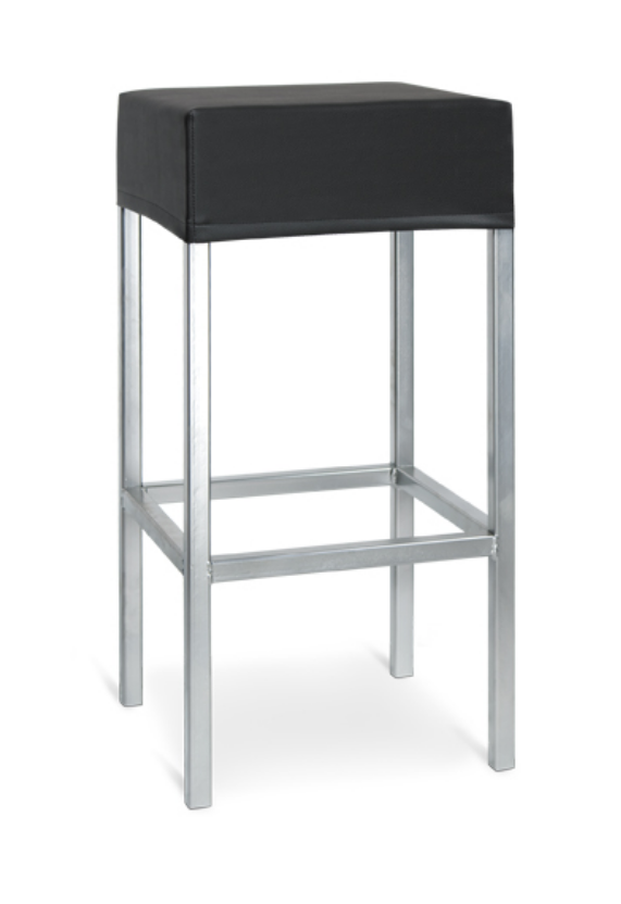 Sgabello in metallo con seduta imbottita ecopelle, indicata il ristorante e sale giochi.