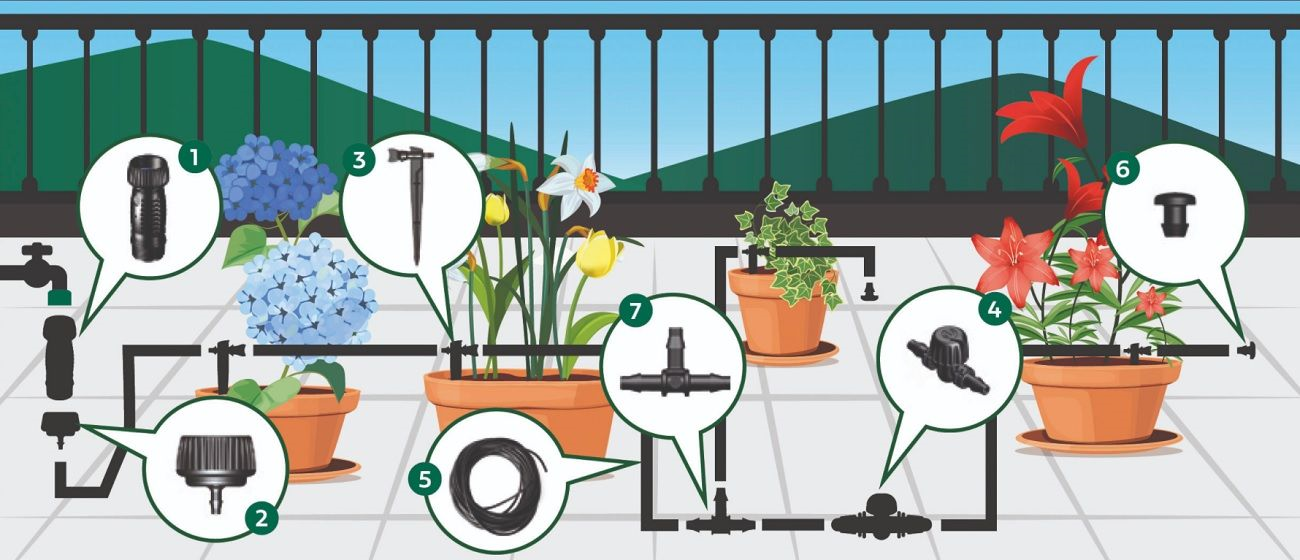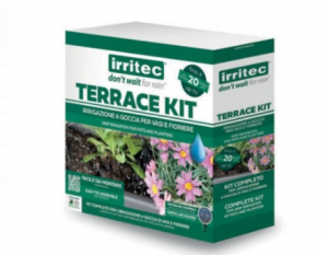 Il kit irrigazione completo Terrace è studiato per essere integrato nel proprio impianto domestico e permette l'irrigazione fino a 20 vasi o balconiere direttamente nel terriccio grazie ai gocciolatori con astina inclusa. Rende accessibile alla portata di tutti la più alta tecnologia utilizzata nella microirrigazione. Il kit è facile da montare e non necessita di attrezzi professionali. Il kit Terrace è sviluppato da Irritec, leader mondiale nell'irrigazione professionale e residenziale, ed unisce prodotti di qualità professionale ad una elevata sempicità di installazione. All'interno del kit sono presenti tutti i tubi, i raccordi e le valvole necessarie alla creazione di un impianto di irrigazione a goccia di stampo professionale. Il seguente prodotto è un kit per l'irrigazione a goccia "Pronto all'uso" che permette una distribuzione uniforme dell'acqua e dei nutrienti vicino alle radici delle painte. Inoltre rende disponibile la più alta tecnologia disponibile nella microirrigazione ad un costo accessibile per tutti.