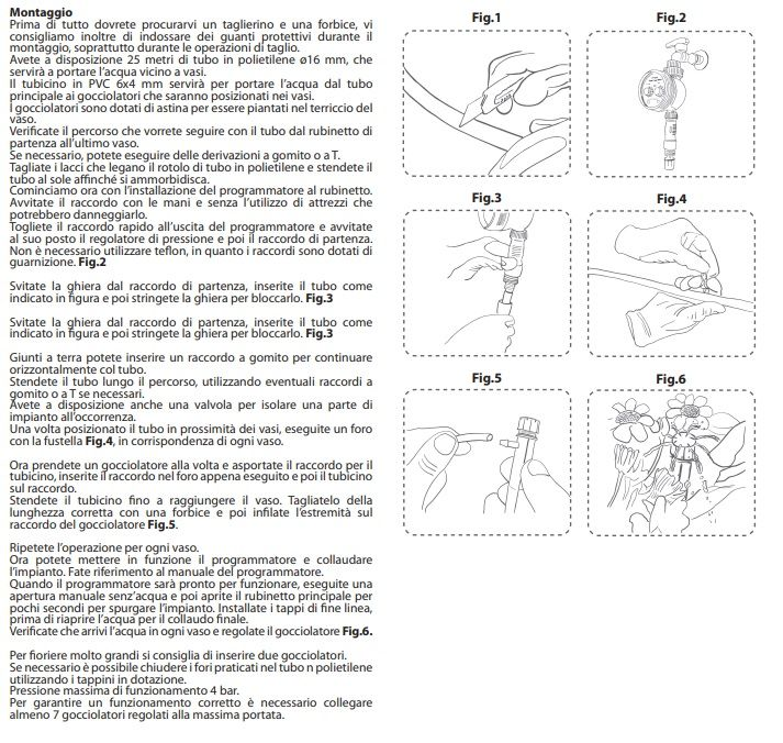 Raccordi per tubo in polietilene 16mm: 1 raccordo di partenza/ 3 raccordi a gomito/ 2 raccordi a T/ 1 manicotto di giunzione/ 3 tappi fine linea