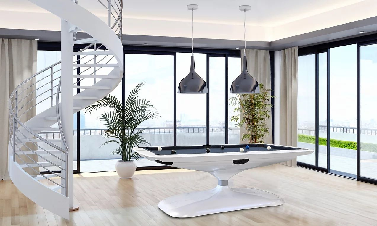 Biliardo di eccellente manifattura,piano in ardesia da 250kg,sponda professionale triangolare,panno professionale,struttura in acciaio,sponda in massello di frassino e scocca in termoplastica. Il modello Montecarlo è studiato per trasformarsi facilmente in tavolo con la semplice aggiunta di due coperture in legno o vetro ad incastro, potete quindi sfruttare al meglio questo fantastico prodotto.