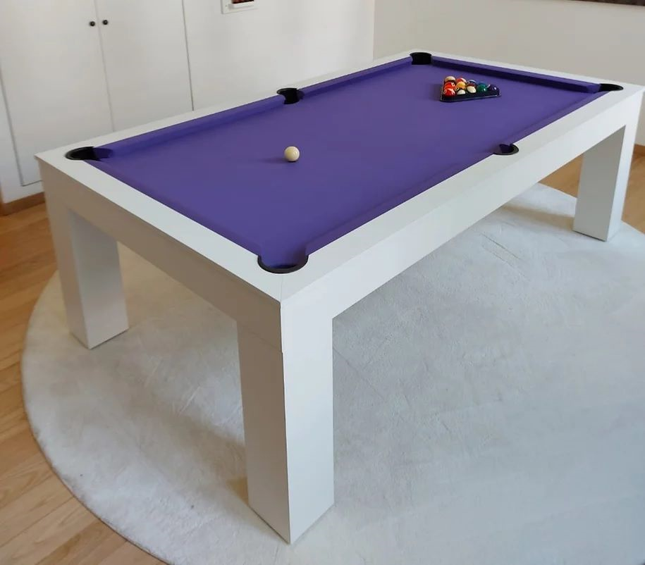 Biliardo di buona manifattura,piano in ardesia da 250kg,sponda professionale triangolare,panno professionale,struttura in massello di betulla e MDF,gamba rinforzata in metallo,rifinitura in speciale nobilitato antigraffio. Il modello Yankee è studiato per trasformarsi facilmente in tavolo con la semplice aggiunta di tre coperture in legno ad incastro, potete quindi sfruttare al meglio questo fantastico prodotto.