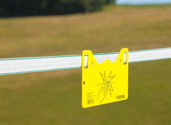 Cartello di pericolo per contrassegnare la presenza di un recinto elettrico.
