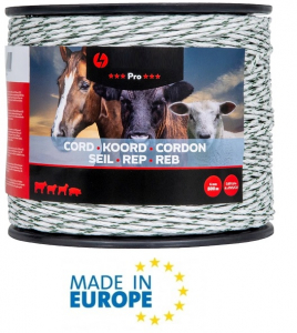 Il seguente prodotto appartiene alla famiglia dei conduttori. Quest'ultimi hanno un ottimo rapporto qualità prezzo e sono adatti per soddisfare ogni esigenza di recinzione elettrica, sia mobile che permanente. Tutti i conduttori sono resistenti ai raggi UV e le caratteristiche di conducibilità e resistenza alla trazione sono ideali per realizzare recinzioni elettriche efficaci. I prodotti Pro Plus, ad alta conducibilità, sono particolarmente consigliati per lunghe recinzioni in quanto assicurano, grazie ai conduttori di rame, un ottimo flusso di corrente fino alla fine della recinzione. La seguente tabella (vedi in basso)aiuta a capire quale è il conduttore consigliato per le diverse situazioni.