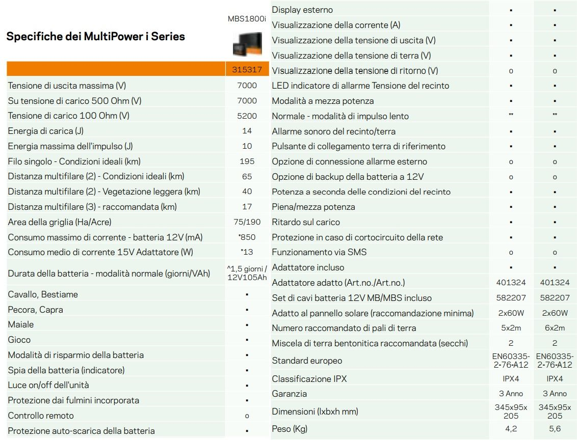 La flessibilità di un apparecchio Multi-power abbinata alla potenza e all’intelligenza dei sistemi Series. Questo apparecchio intelligente è utilizzabile unitamente a una batteria (con o senza pannello solare) ma può anche essere collegato alla rete elettrica. È indicato per una recinzione lunga fino a 65 km e grazie al display esterno in dotazione è possibile avere un quadro delle prestazioni della recinzione. Inoltre, sono disponibili diversi accessori per estendere le funzionalità del tuo apparecchio e per avere il controllo completo della tua recinzione. Soluzione perfetta per le recinzioni elettrificate nel settore dell'allevamento e della zootecnia, con un eccellente rapporto qualità-prezzo. Caratteristiche
