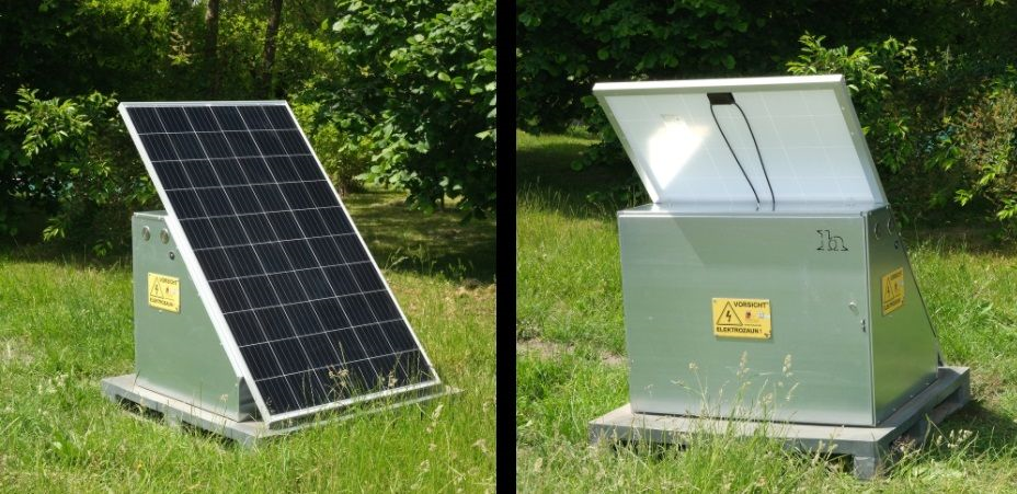 - Elettrificatore MBS1800i - Regolatore Energizer i Series - Regolare di carica solare Victron BlueSolar MPPT 100/30 - Modulo solare 340 Watt - Victron Smart Battery Protect BP-65 - 2x Batteria AGM Panasonic 120Ah LC-P12120P - 2x Bentonite Super Earthing Mix (6,5 Kg) - 5x Picchetto di messa a terra 1 m - 2x Presa di terra - 3x Morsetto di terra - 30 m Cavo di uscita 2,5 mm - 10x Morsetto angolare con dato esagonale - 3x Scudo in alluminio Stazione solare - Manuel Stazione Solarpower - Scatola di metallo 1100x1200x1100 mm - Pallet di plastica 1200x1200 mm