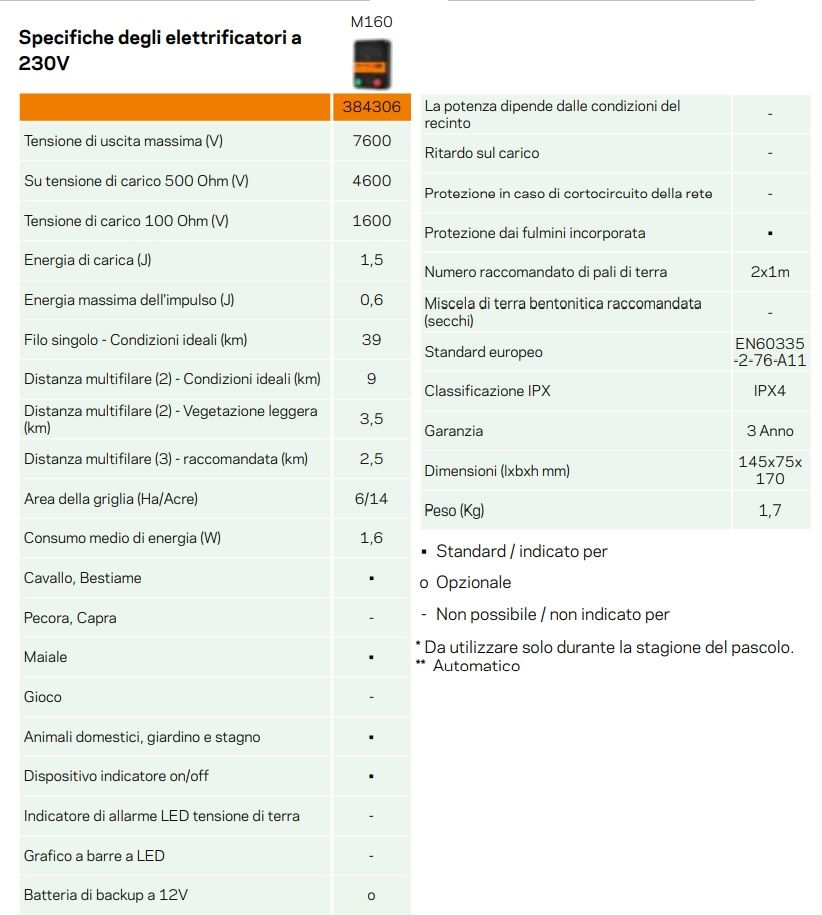 - Lunghezza recinzione raccomandata: 2,5 km