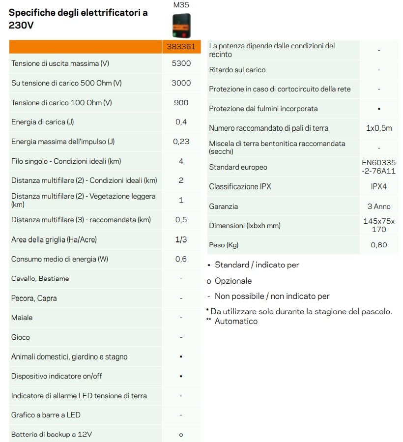 - Lunghezza recinzione raccomandata: 0,5 km