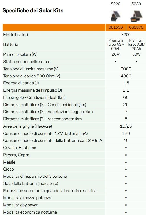 - Elettrificatore B200 da 1,45 J - Pannello solare 20 W - Batteria Premium Turbo AGM 60 Ah (caricata dal pannello solare)