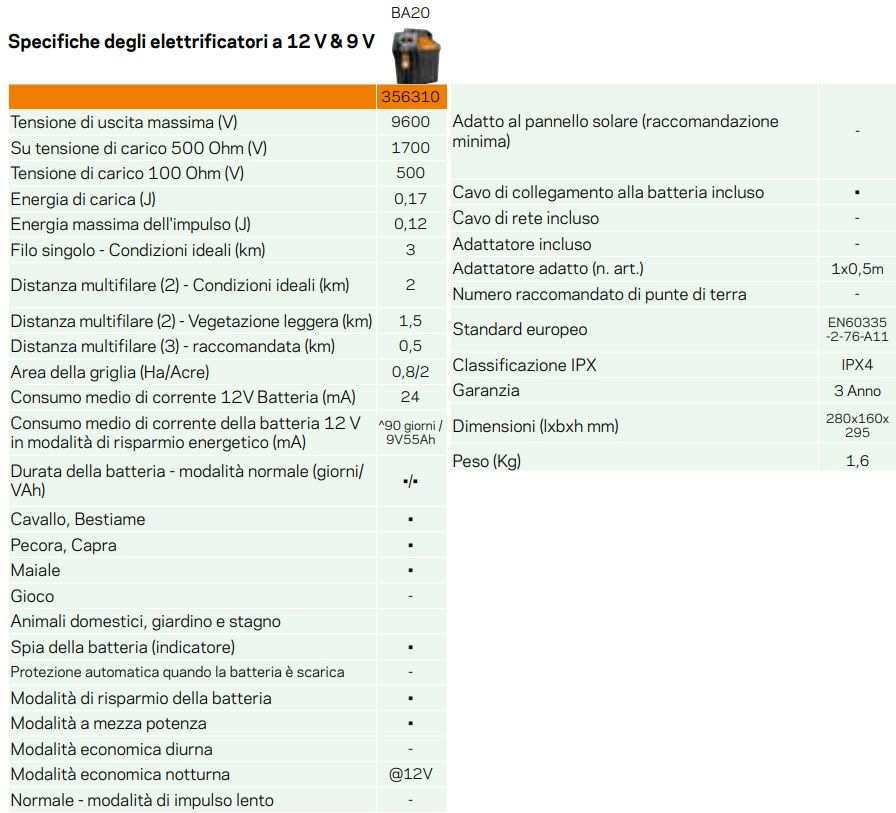 Il BA20 è il più piccolo dispositivo a batteria Gallagher ed è indicato per recinzioni corte fino a 2 km. Il BA20 è leggero e facile da trasportare, il che lo rende molto adatto anche per recinzioni mobili. Il dispositivo è dotato di una protezione antifulmine interna e viene fornito con un set di cavi di collegamento. La batteria non è inclusa. Soluzione perfetta per le recinzioni elettrificate nel settore dell'allevamento e della zootecnia, con un eccellente rapporto qualità-prezzo. Caratteristiche