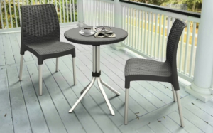Set da terrazzo per interno/esterno ideale anche per giardini e spazi di intrattenimento. Elementi d'arredo eleganti e sofisticati, con trama piatta in stile rattan resistente e duratura.