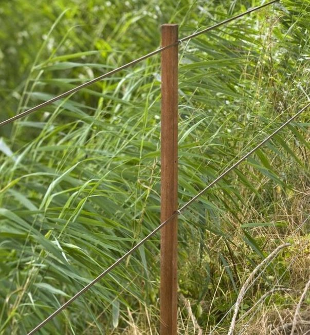 Prodotto 100% naturale senza l'aggiunta di agenti impregnanti dannosi per l'ambiente. Aspetto naturale che si fonde perfettamente con il paesaggio. Gli isolatori non sono necessari, il filo può essere collegato con fili di collegamento.