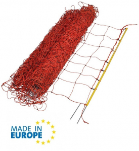 Rete di recinzione completa e facile da spostare per pecore e agnelli. Indicata anche come delimitazione di fossi. Lunghezza: 50 m. Comprende 14 pali con doppio picchetto montati nella rete.