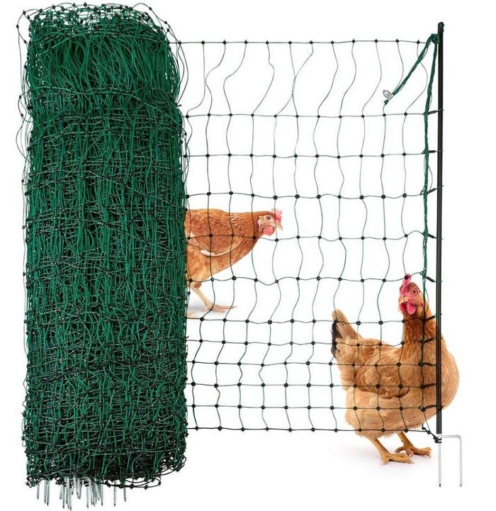 Grazie a questa rete elettrificata è possibile realizzare velocemente dei recinti mobili per pollame, conigli e altri piccoli animali da cortile. Le maglie piccole impediscono la fuga agli animali e le proteggono dai piccoli predatori come volpi, donnole ecc.