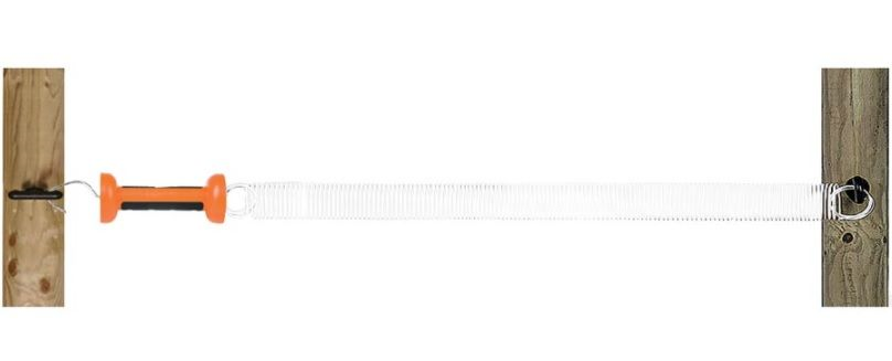 Set completo per realizzare un cancello a molla adattabile a passaggi larghi fino a 5 metri. Un’eccellente visibilità è assicurata dai colori brillanti della molla bianca e della maniglia arancione. Si ritrae fino alla posizione di partenza. Sconsigliato con i cavalli.