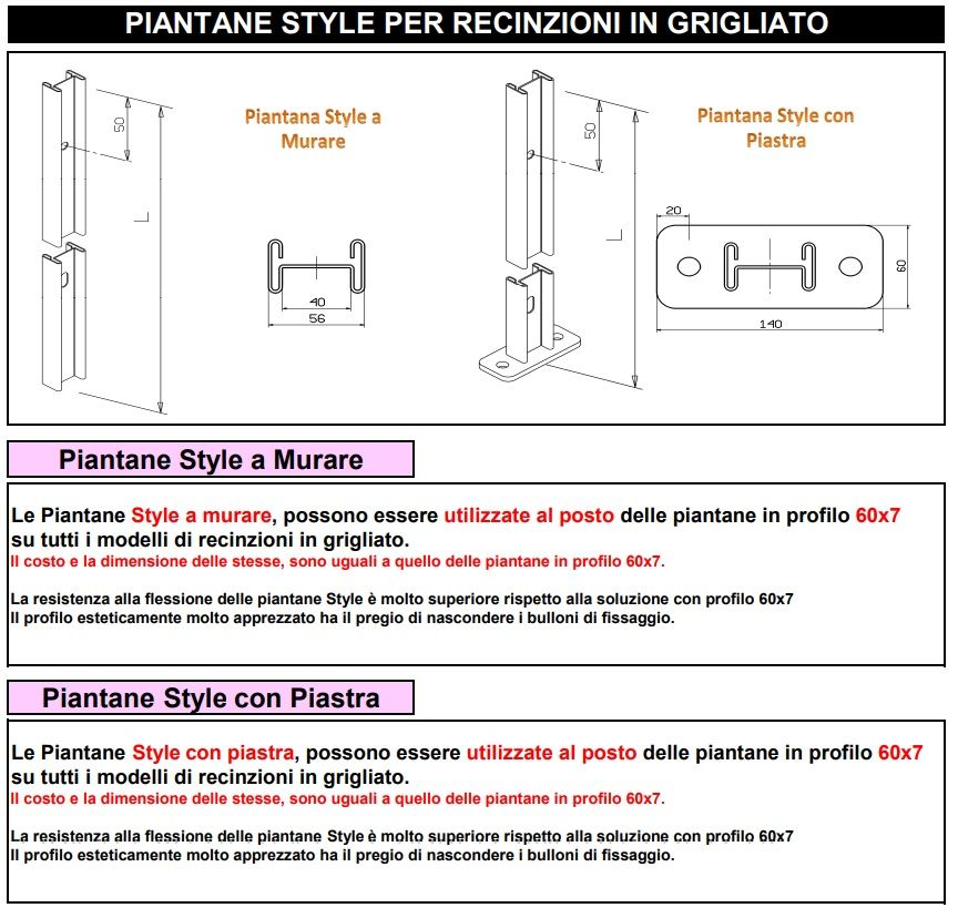 Le piantane hanno una sezione a "H" 56x35 mm avente spessore 1,8 mm, dotate di opportune forature per il fissaggio dei pannelli. o Per il fissaggio dei pannelli alle rispettive piantane, è prevista una bulloneria