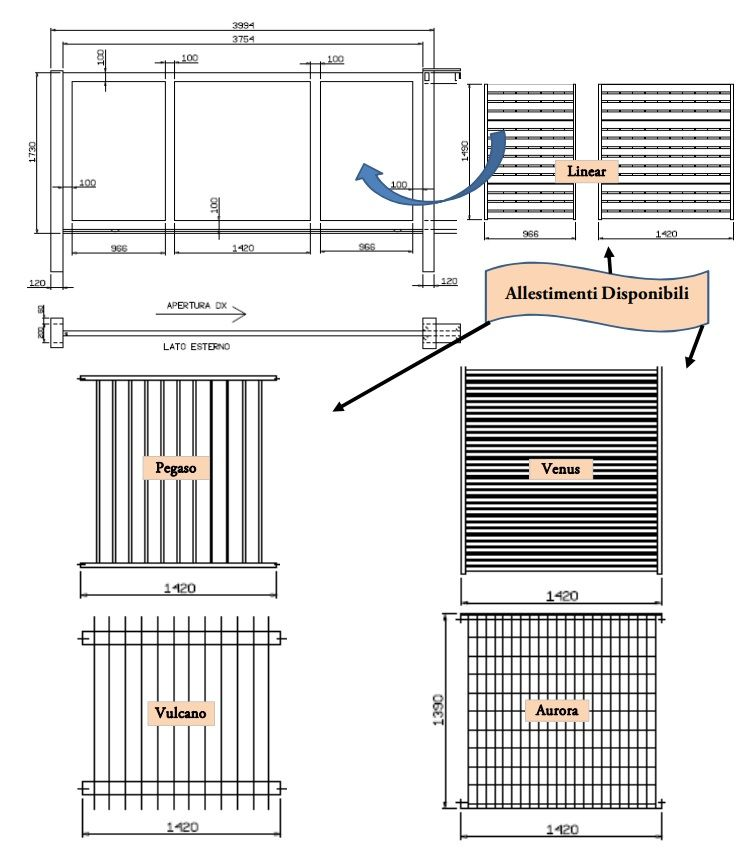 - Colonna di scorrimento e colonna di battuta realizzate a cavallotto, in tubolare 120X60X3, al fine di escludere il pericolo di caduta dell'anta