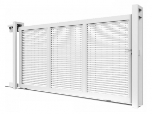 Cancello carraio scorrevole MADE IN ITALY. Il seguente prodotto appartiene ai cancelli modulari pronti in magazzino. Hanno il grande vantaggio di avere dimensioni e caratteristiche già definite, di agevolare le imprese, che posso predisporre a cantiere ancora aperto, tutte le fondamenta e gli accessori necessari. Non ci sono più inutili attese con possibili fermi cantiere. Il cancello quindi può essere montato con risparmio di costi e tempi senza rinunciare alla qualità che si conserva nel tempo.