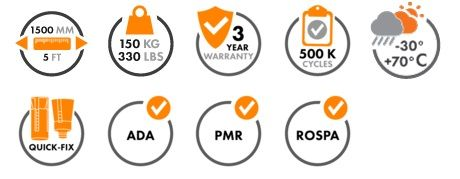 - Forza di chiusura sull'intero angolo di apertura di 120°