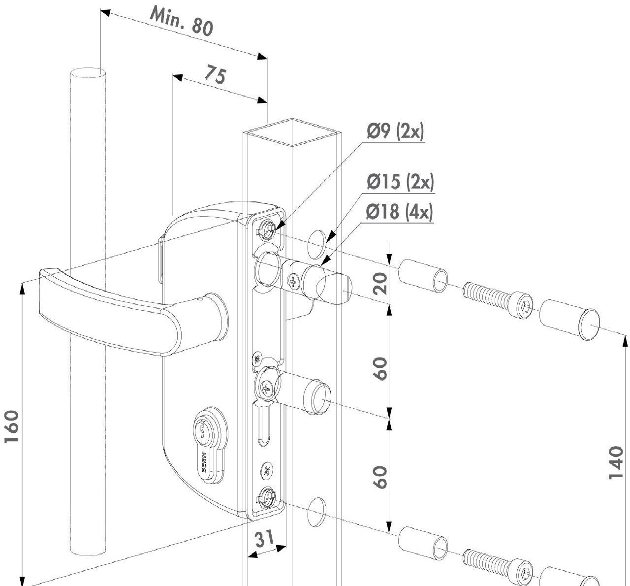 Catenaccio Serratura per cancello di alta qualità con custodia in alluminio e meccanisco in acciaio inossidabile. Consigliamo questa serratura come standard per tutti i vostri cancelli industriali. La regolazione continua dei catenacci di 20 mm permette un perfetto aggancio/bloccaggio del meccanismo. Un solido catenaccio garantisce un bloccaggio sicuro. Fornito di serie con coppia di maniglie in alluminio anodizzato.
