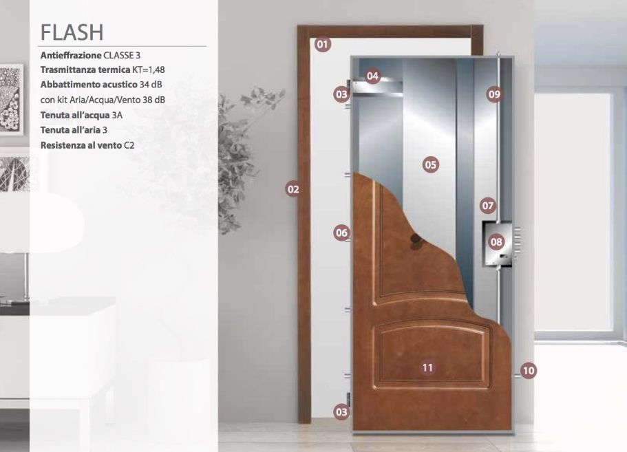 La porta blindata , elemento strutturale dell'edificio , fa parte dunque della ''difesa passiva'' e deve essere dotata di specifici requisiti tecnici anti-scasso per impedirne l'apertura e l'accesso da parte di persone non autorizzate.