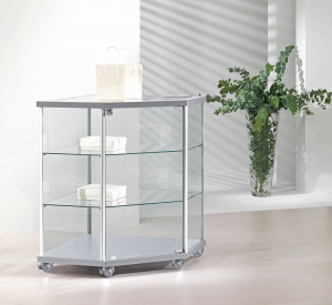 VETRINA / BANCONE angolare 70/B - dimensioni: 73X73XH92-CON 2 RIPIANI REGOLABILI IN ALTEZZA - ANTE CON SERRATURA- CON RUOTE PIROETTANTI