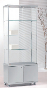 Vetrina con profili in alluminio – cristalli temperati – no. 2 ante battenti con serratura – no. 3 ripiani regolabili in altezza – top legno – mobile legno h 43 cm con ante battenti e serratura – su ruote.PESO 86 kg DIMENSIONI 73 x 39 x 183 cm