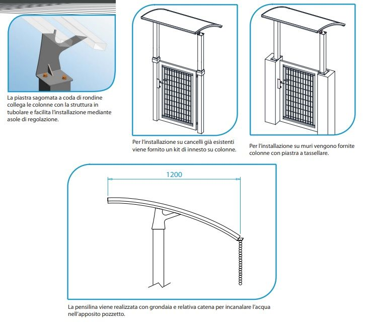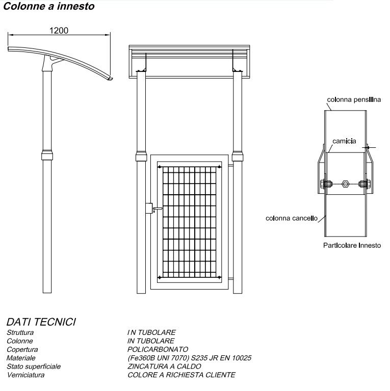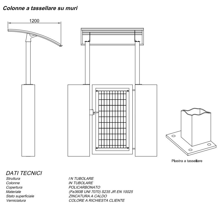 Pensilina Zincata e Verniciata per Cancello Pedonale Modello SOLAR2