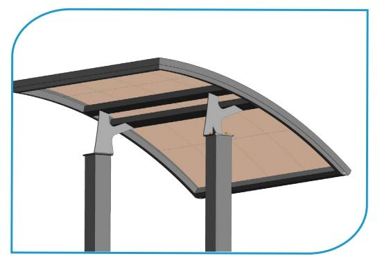 La pensilina zincata tipo SOLAR2 si caratterizza per l'elegenza della linea morbida ma allo stesso tempo accattivante e la predisposizione/abbinamento con qualsiasi cancello pedonale. Costruita con profili in tubolare è estremamente robusta e garantisce un'eccellente luminosità grazie alla copertura in policarbonato disponibile in varie colorazioni.