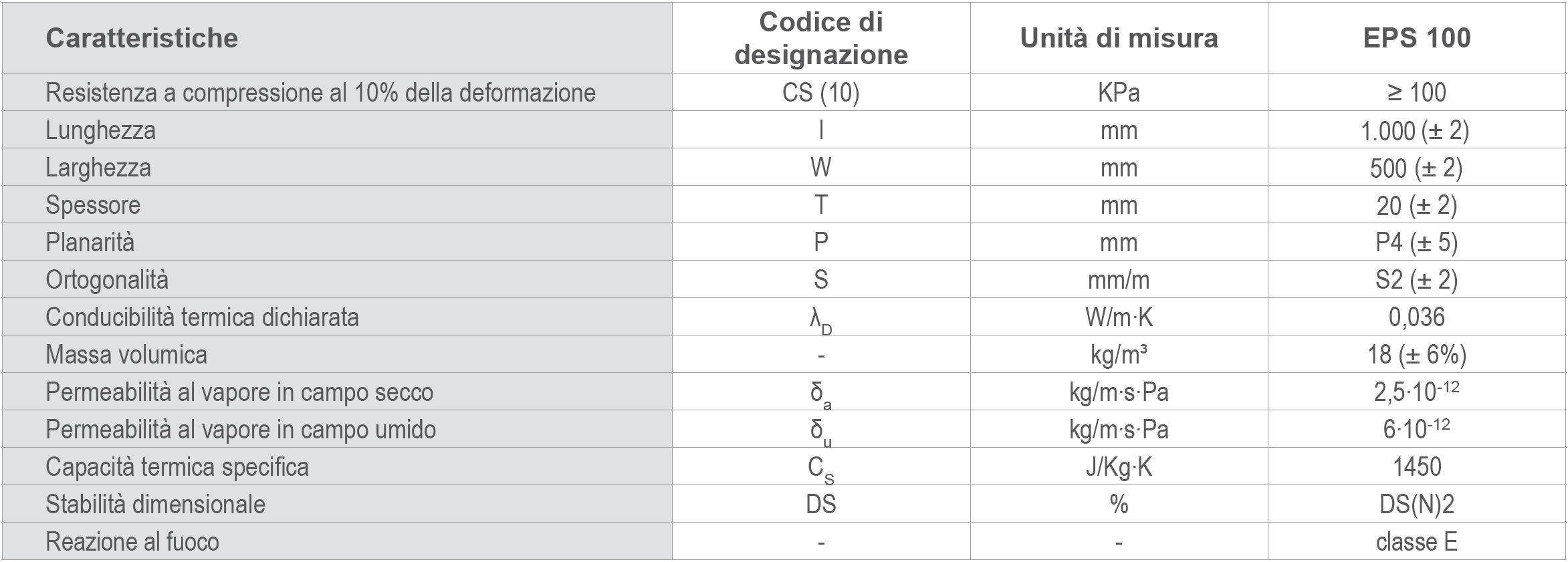 Dalla tabella è possibile notare il valore molto basso della conducibilità termica "lambda", ciò fa si che l'EPS è un ottimo materiale isolate!!!