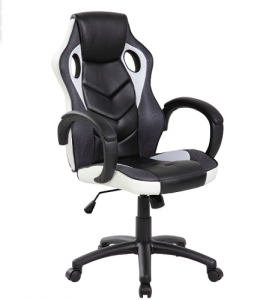 GA 9381 W Struttura in acciaio Razza nera in nylon con ruote piroettanti nere in nylon Sistema di elevazione a gas per la regolazione della seduta in altezza + copertura nera in polipropilene Meccanismo oscillante bloccabile Manopola per la regolazione di tensione per il peso del corpo Rivestimento seduta e schienale in PU imbottito Dotata di braccioli in polipropilene + copertura in PU imbottito