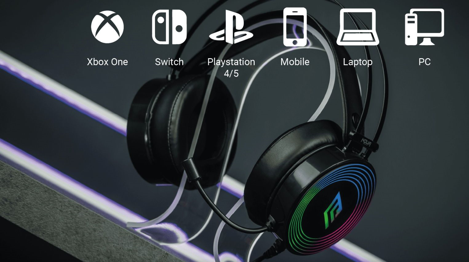 Confortevoli cuffie gaming over-ear con illuminazione RAINBOW.
