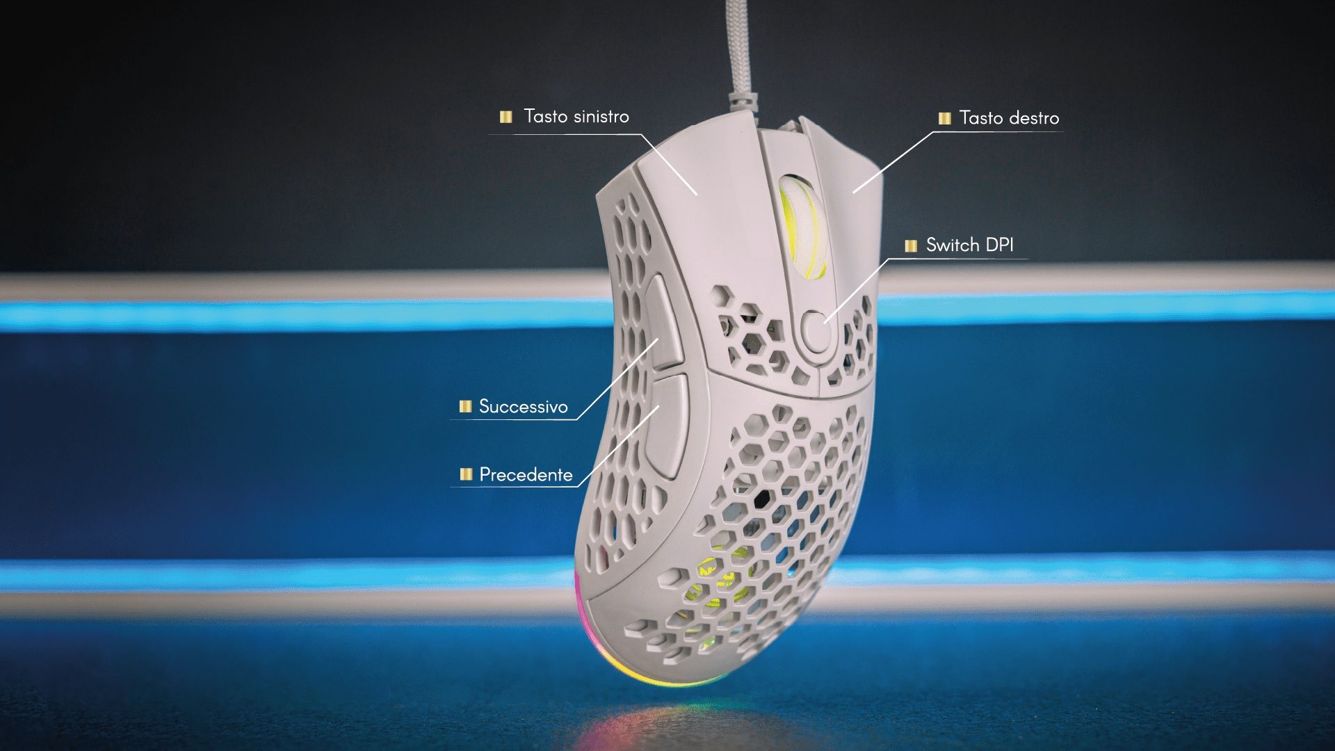 Mouse Gaming Ottico USB NOUA MYST Bianco RGB Pixart 3325 con 7 Tasti 10000DPI Regolabili