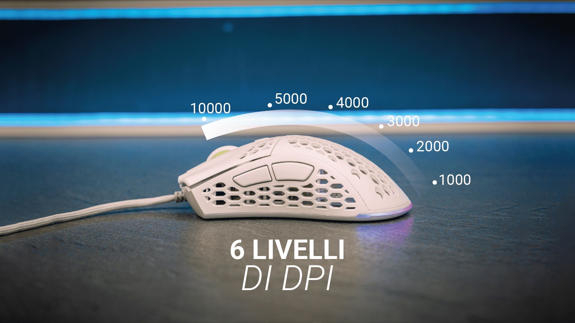 Caratterizzato da 6 livelli DPI: 1000,2000,3000,4000,5000,10000. Tracciamento perfetto dei pixel, accelerazione del mouse zero, frequenza di polling di 1000 Hz.