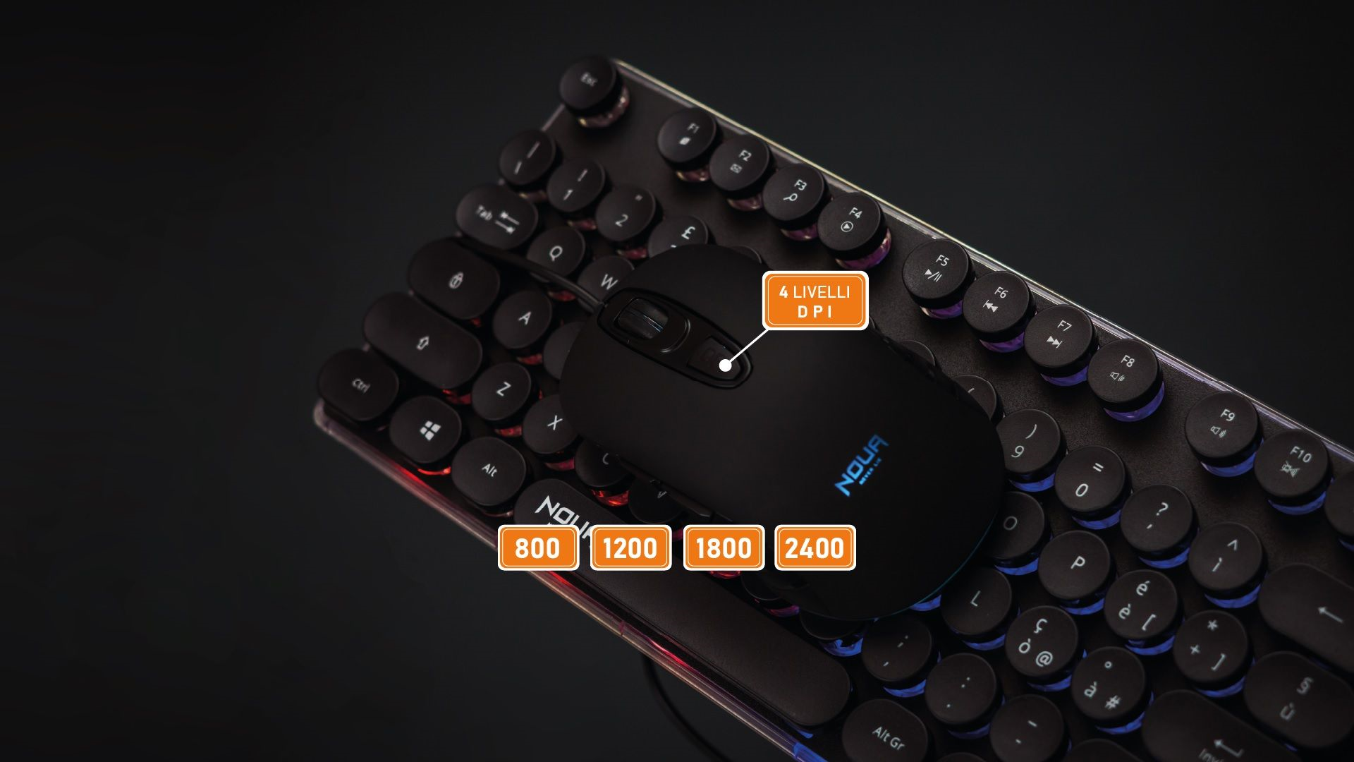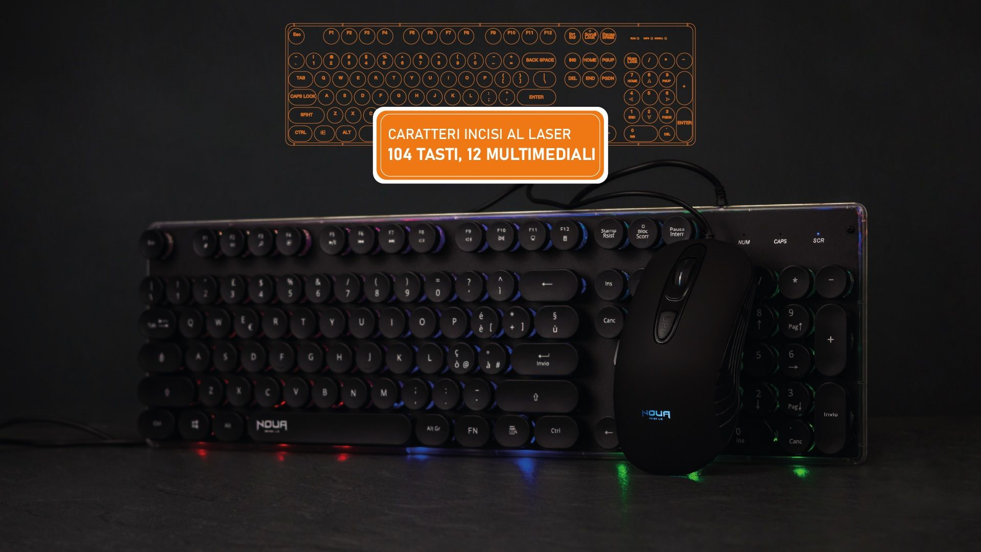 Kit Gaming NOUA VENUS Combo Tastiera con Retroilluminazione RGB + Mouse 2400Dpi Regolabili