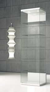 Vetrina in cristalli temperati con anta battente con serratura , 5 ripiani , plafoniera con 2 faretti LED.