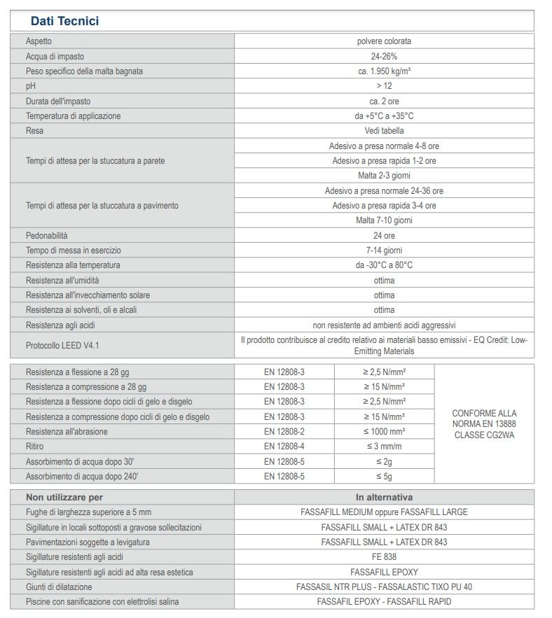 - Non usare FASSAFILL SMALL su sottofondi umidi o soggetti a risalite di umidità.